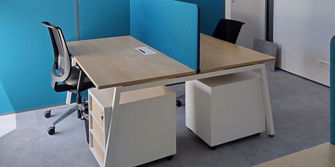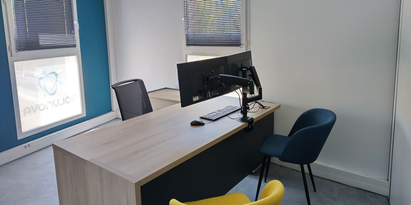 Un bureau partagé pour deux personnes dans une pièce dédiée. Idéal pour un binôme, une collaboration fluide.